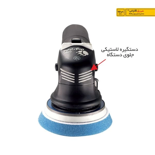 وجود این پایه لاستیکی روی دستگاه موجب میشود تا اپراتور در بین عملیات پولیشکاری بتواند آنرا برعکس روی میز قرارداده تا گرد و غبار روی میز به سمباده یا پد پولیشکاری نچسبد.