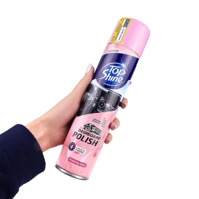 اسپري داشبورد تاپ شاين حجم 300 میلی لیتر با طعم آدامس یک اسپری براق کننده و محافظ داشبورد با رایحه مطبوع است که از سطح داشبورد در برابر گرد و غبار و ساییدگی و عوامل آلوده کننده محافظت میکند و هچنین داخل ماشین را خوشبو میکند که وقتی وارد ماشین میشود حس خوبی به شما میدهد. قیمت اسپري داشبورد تاپ شاين رایحه آدامس بسیار مناسب میباشد و به دلیل ایرانی بودن محصول قیمت آن پایین است.